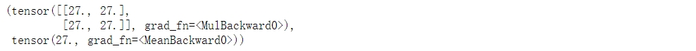 现在开始进行反向传播,因为 out 是一个标量,因此 out.backward() 和out.backward(torch.tensor(1.))等价。