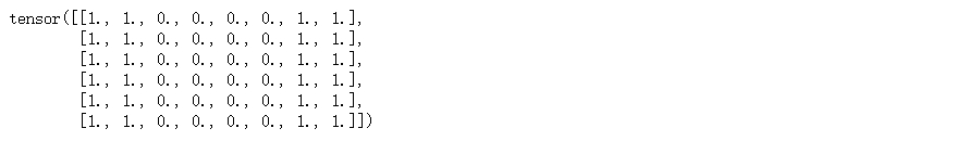 一个卷积层的简单应用(1):检测图像中物体的边缘,即找到像素变化的位置。首先我们构造一张6×8的图像(即高和宽分别为6像素和8像素的图像)。它中间4列为黑(0),其余为白(1)。