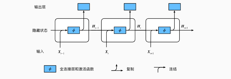 递归神经网络的结果与传统神经网络有一些不同,它带有一个指向自身的环,用来表示它可以传递当前时刻处理的信息给下一时刻使用,结构如下: